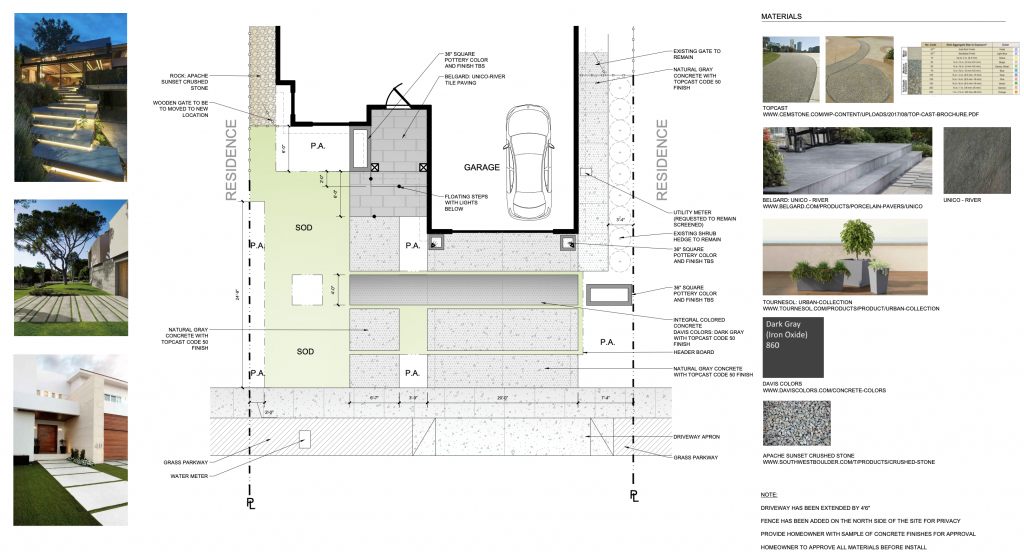 For this project, we used bold straight lines, accenting the landscape with etched paving, to achieve a modern look which complements this modern home. The 3D rendering, seen below, gives us the ability to pan and orbit around the model, providing useful birds eye and ground level views. 3D rendering is a sophisticated, highly detailed approach to landscape architecture and design. It allows our clients to view their properties anytime from sunrise to sunset which provides the exact look and feel of the property at various times of day.